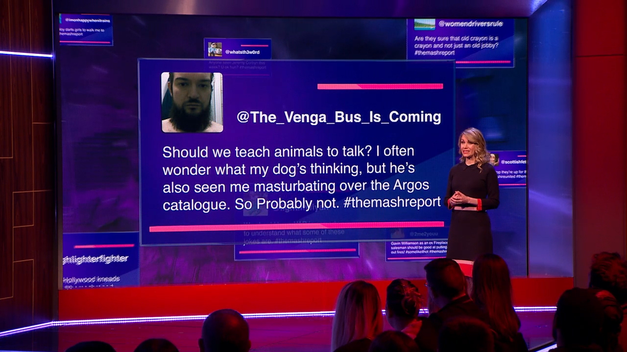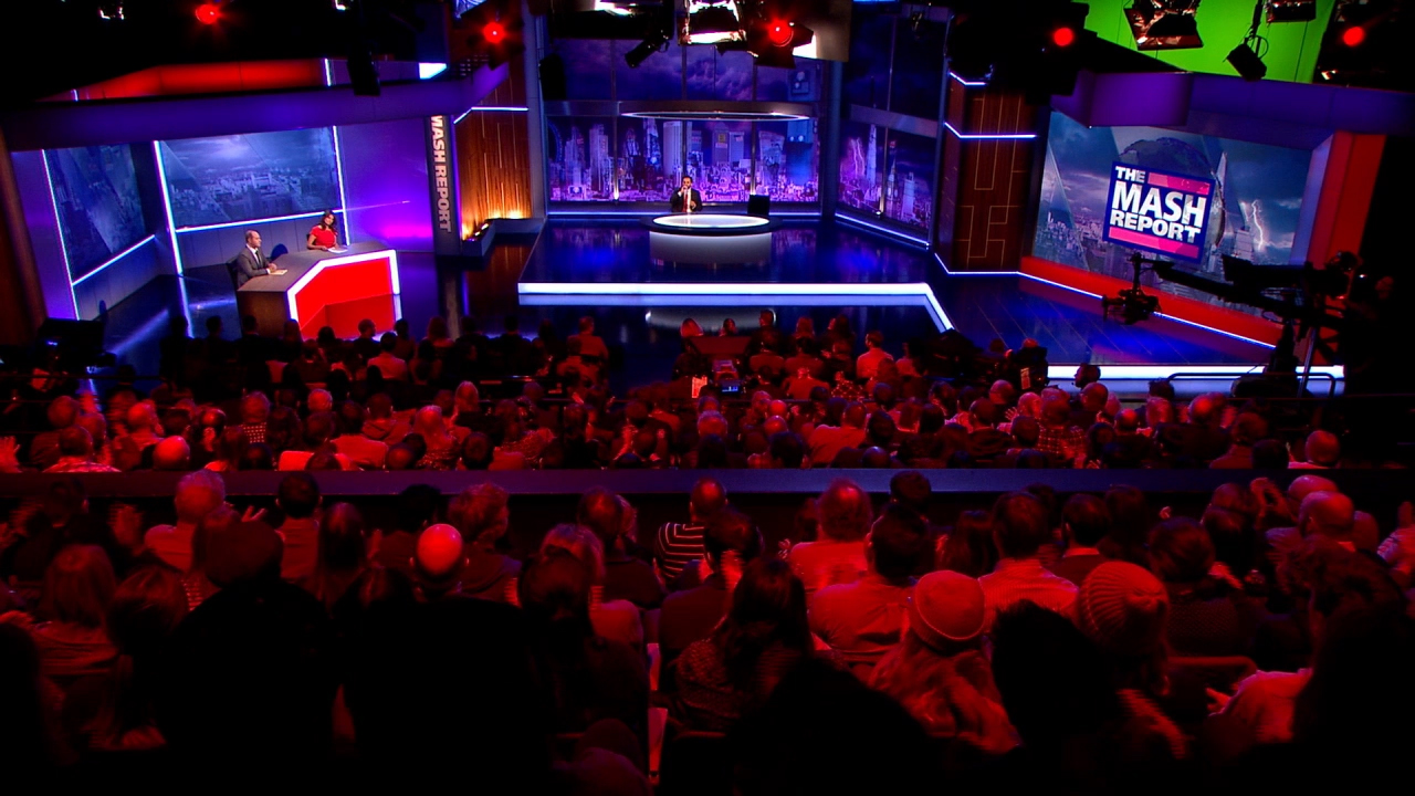 The Mash Report is a satirical comedy show originally broadcast on the BBC. I developed the show’s full visual identity, including the title sequence, on-screen graphics, and designs for both the studio set and large-format screen content.